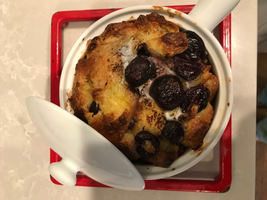 So first let me admit I am obsessive about food, seriously obsessive. So I have a mental inventory of what I have in my pantry (admittedly I don’t routinely take things from a box, bag or jar so it isn’t a plethora of goods but it isn’t paltry either) and I started going through that. Ah ha, I have a can of dark sweet cherries so maybe something for breakfast because I also have some whipped cream from the last pumpkin pie I made, I should make a sweet bread pudding! I feel asleep resting easy that I knew what I was making for breakfast and I was going to use things I already had.