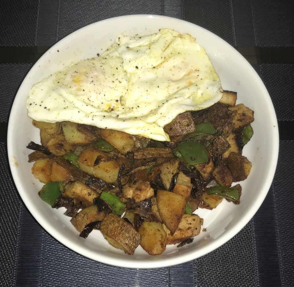 Optional: I cook over easy eggs and spoon some hash into a bowl and top each with an egg, the runny yolk mixed in the hash is really good.